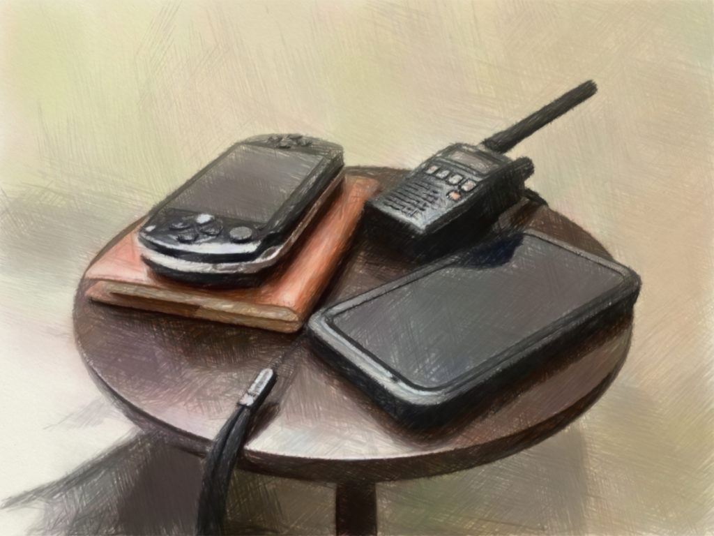 いろいろ話を省いてしまったところもあったけど、補足をすれば、スマホが完全防水ケースを装備していたりとか、ラジオ受信機のアンテナがカスタムしてあったりとか、プレイステーションポータブルも最初期の頃のモデルを好んで使っているとか、いろいろなこだわりポイントがあるんだよ。文庫本だってサイズがぴったりの革製カバーをわざわざ買ったくらいだからね。